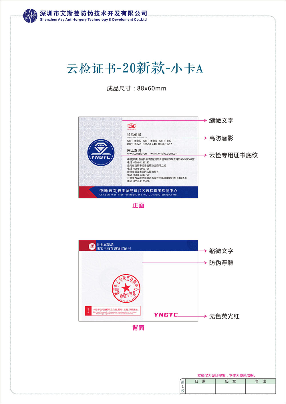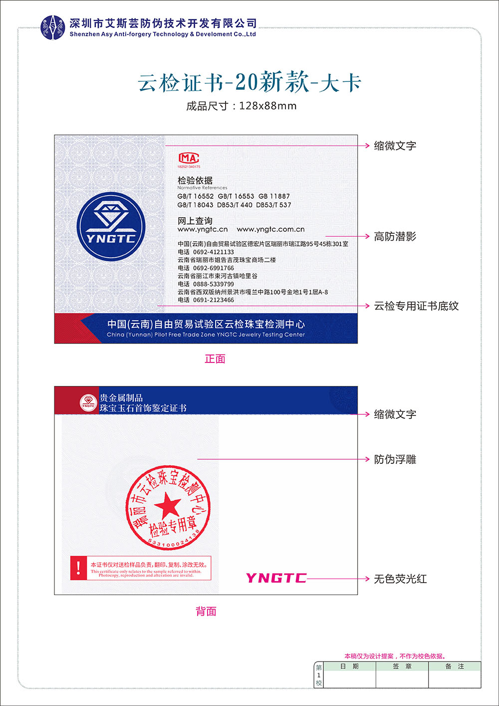 加拿大28珠宝玉石首饰鉴定证书在设计和印刷时作了相应的防伪措施。